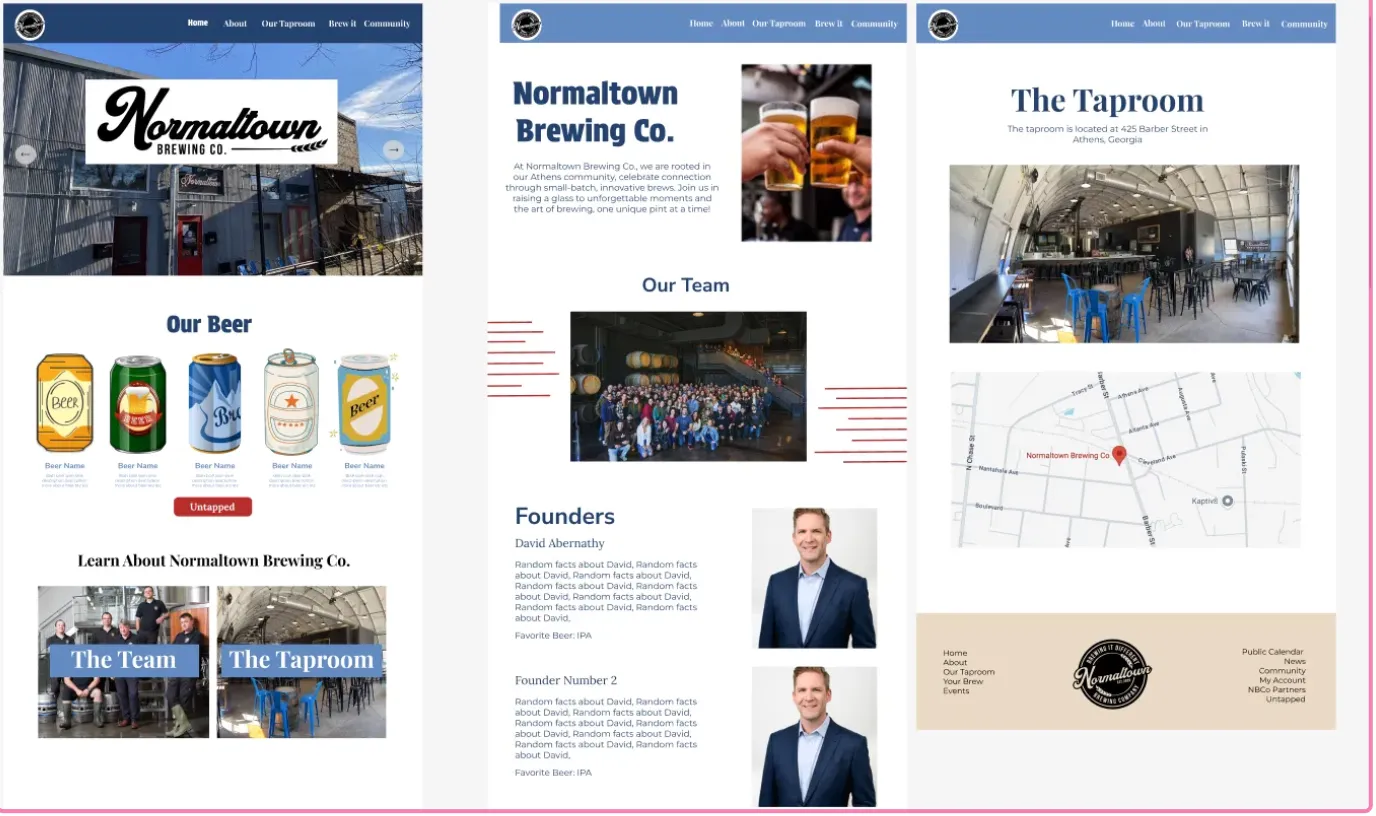 Here are some picture of our Beta version! For this version, we got rid of the build your own beer process and added more relevant pages. We included a staff page, added elements to the home page, and updated some design elements.